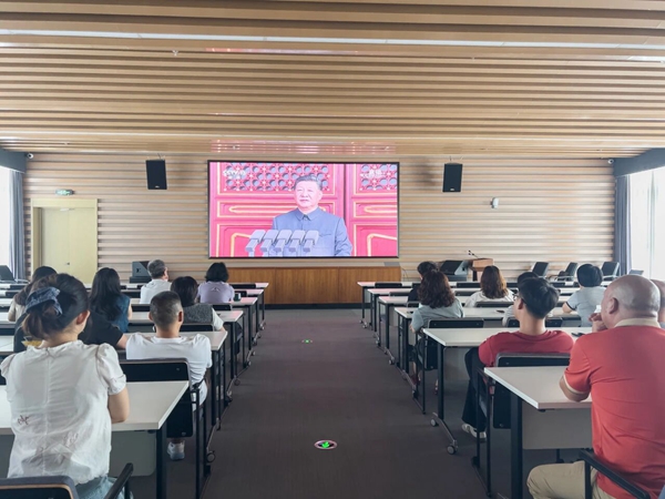 上午9時(shí),全體員工聚精會(huì)神地觀看直播畫面,不時(shí)發(fā)出陣陣贊嘆。當(dāng)國旗護(hù)衛(wèi)隊(duì)邁著鏗鏘有力的步伐走向升旗區(qū),當(dāng)雄壯的《義勇軍進(jìn)行曲》響徹天安門廣場,觀看現(xiàn)場的員工們自發(fā)起身,與現(xiàn)場同步高唱國歌,表達(dá)對祖國的深切熱愛和崇高敬意。